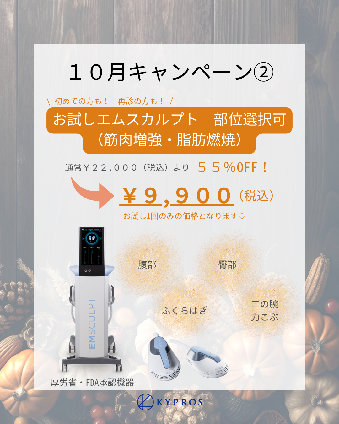 10月キャンペーン(ピーリング、エムスカルプト)のお知らせ