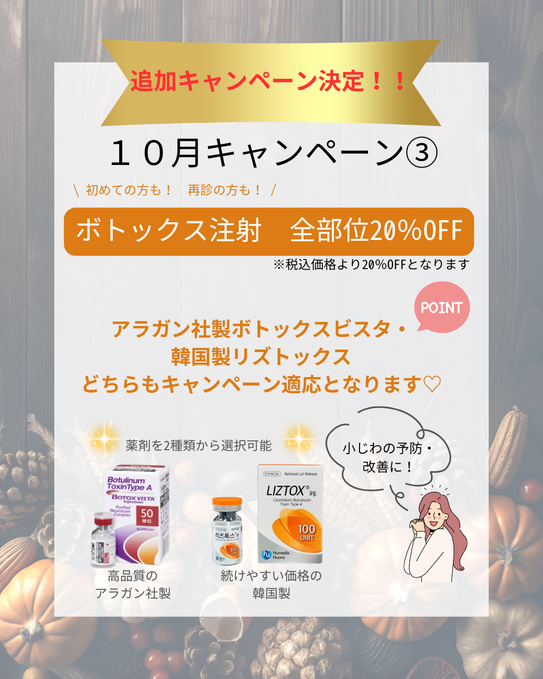 ②スタッフおすすめのボトックス一部メニューがキャンペーンとなります!