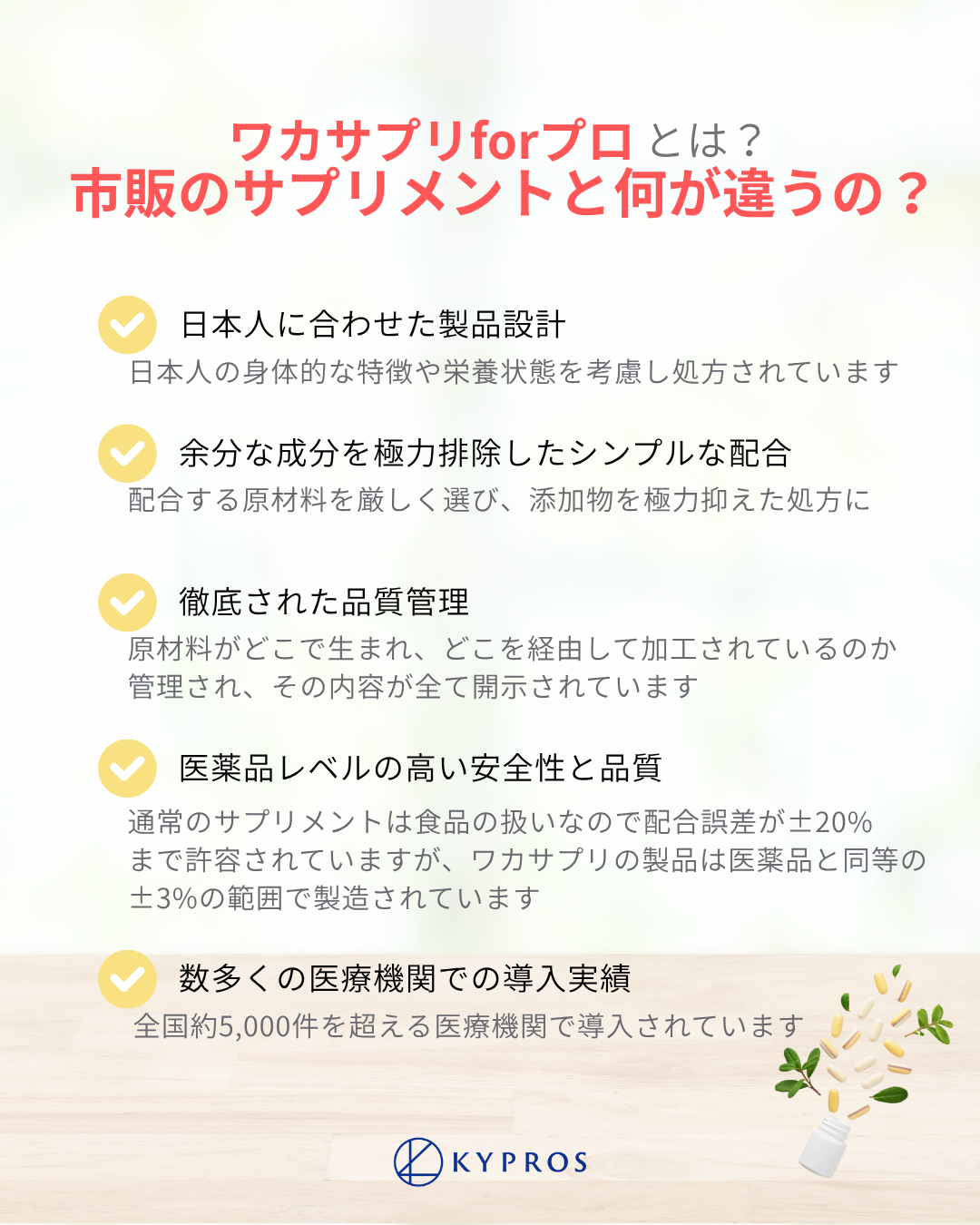 様々なサプリメントの中から、より安心して長期的に続けやすい【ワカサプリforプロ】を導入いたしました😊