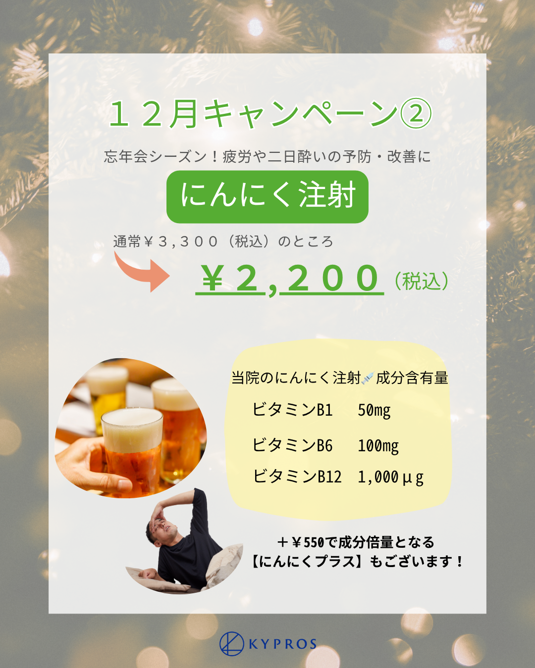12月キャンペーン(ポテンツァ、にんにく注射)のお知らせ